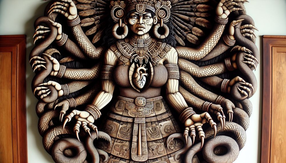Identificada como "la de falda de serpientes", Coatlicue es una prominente figura de la mitología azteca. Se le atribuye la creación de las estrellas, el sol y la luna. Esta entidad, temida y reverenciada en igual medida por su representación llena de serpientes y garras, tuvo un culto tan potente que llegó a atemorizar a los conquistadores españoles.